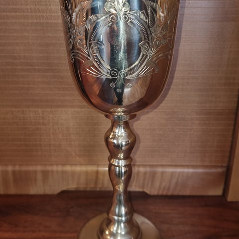 Lene Bjerre pokal med logo og stearinlys. «Pokalen» kan benyttes som vase etter stearin lyset er oppbrukt.