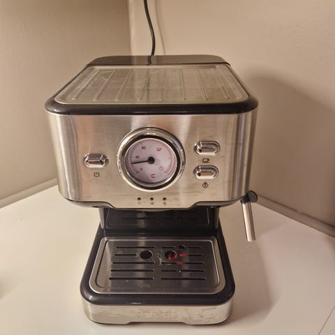 Emerio CME-121773 kaffetrakter med glasskanne og front i rustfritt stål. Kaffetrakteren har digitalt display og betjeningsknapper på fronten. Effekten er oppgitt til 1600–1900 W. Glaskannen har nivåmerking for antall kopper. Enheten er beregnet for vanlig nettspenning 220–240 V, 50/60 Hz. Passer til tilberedning av filterkaffe i husholdning eller på kontor.