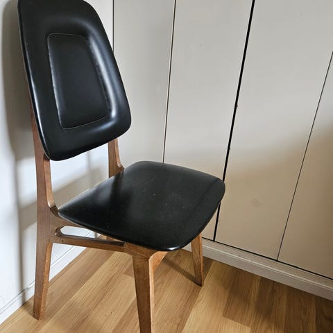 5stk pent brukt retro beige teak stoler. 500kr per stk.