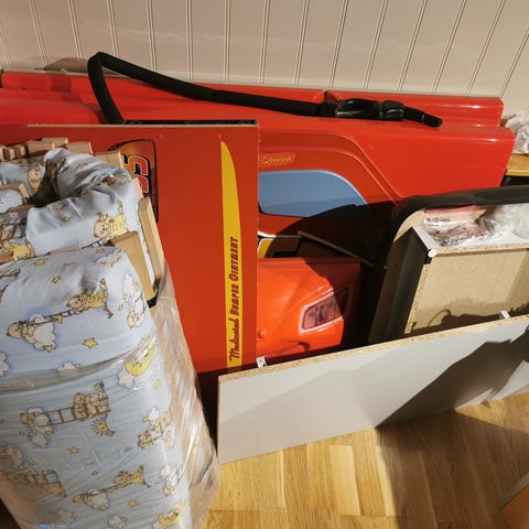 Jollyroom juniorseng med bilmotiv. Juniorsengen er utformet som en racerbil med trykk i røde og gule farger. Sengen har sengebunn av lameller og bilformede sidepaneler. Passer som overgangsseng fra sprinkelseng for barn i typisk junioralder. Madrass og sengetøy kan brukes i standard juniorstørrelse (ca. 70 x 140 cm, avhengig av modell). Egnet til barnerom der man ønsker en juniorseng med biltema.