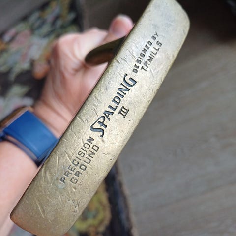 Noe sliten fra å ha ligget urørt på et loft, men funker helt fint! Orginalt grep og god feel i puttestroket