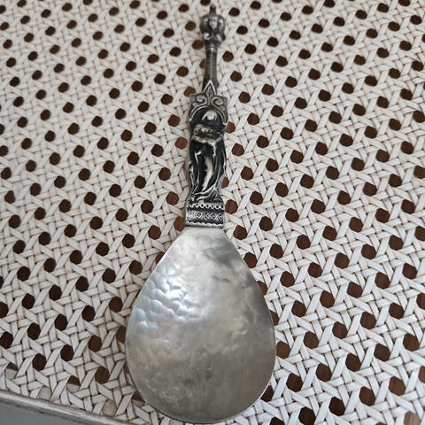 Drikkebeger og serviettring i tinn selges samlet kr 180
