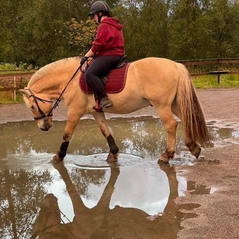 Ble innridd for 4 måneder siden, så fortsatt litt uerfaren, men tar det meste på strak hov.