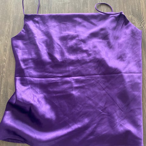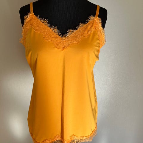 KappAhl singlet for dame i størrelse M. Singleten er blå og laget i polyamidblonde med smale skulderstropper. Stoffet er lett og gjennomsiktig, egnet som topp over annet tøy eller som underdel under genser eller jakke. Passer til hverdagsbruk eller som del av et lag-på-lag-antrekk.