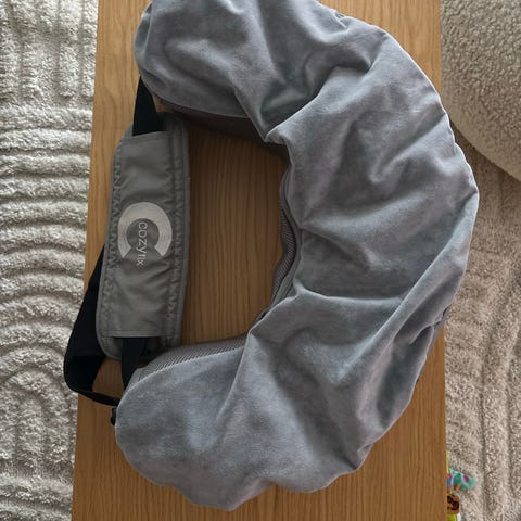 Cozyfix ammepute i grå farge. Puten har buet fasong som legges rundt kroppen og festes med stropp. Trekket er mykt og avtagbart med glidelås. Leveres med oppbevaringspose. Egnet som støtte ved amming og flaskemating for å gi mer stabil og ergonomisk posisjon for både barn og voksen.