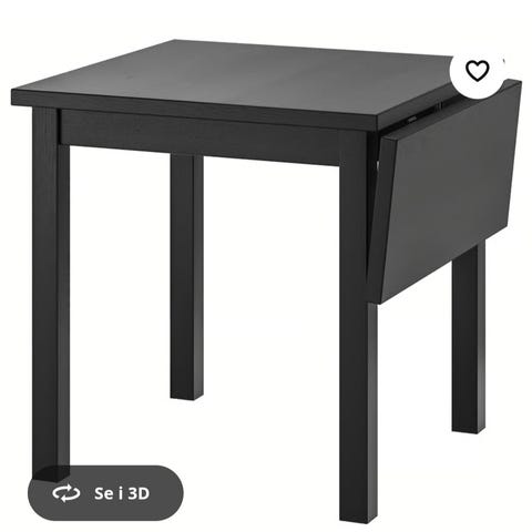 Se IKEA sine nettsider (herunder mål): https://www.ikea.com/no/no/p/nordviken-klaffebord-svart-70368716/