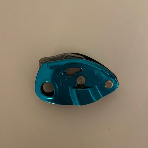 - hvis tauet belastes brått som i et fall, klemmes det skånsomt fast mellom to kammer inne i bremsen og hjelper sikreren med å stoppe fallet.