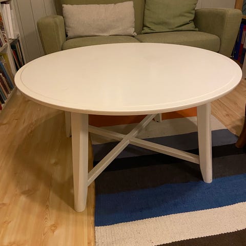1 stk pinnestol. Hvit/kremhvit malt. I fin stand med noen bruksmerker (dette kan males over). Selges grunnet flytting.