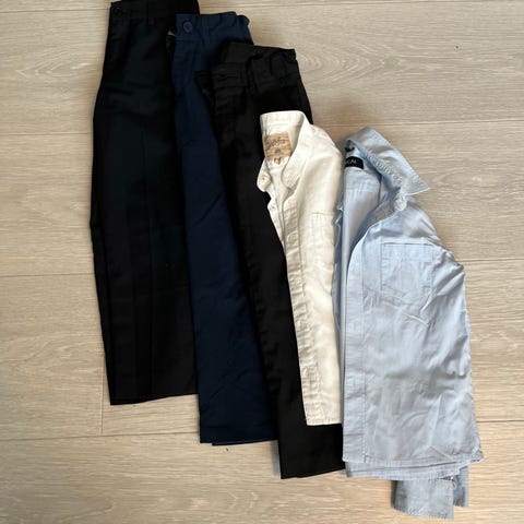 Klespakke til 17 mai? Inneholder 1 dressbukse fra Name it, 1 dress shorts fra Name it(helt ny) , skjorte hvit med lang arm fra Hust&claire, 1 skjorte kort arm fra HM for gutt i størrelse 128. Passer til hverdagsbruk eller mer formelle anledninger. Selges samlet