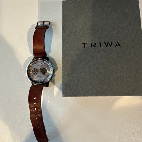 Pent brukt klokke fra Triwa. Den går ikke, så batteriet må byttes.
