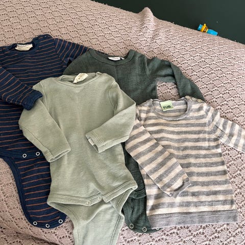 Nøstebarn ullbody. Noe krympet i vask, reell str 68/74.
