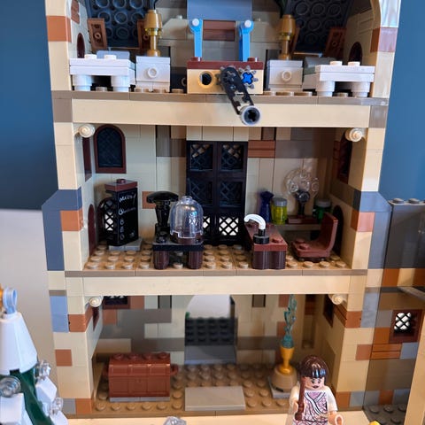 LEGO Harry Potter byggesett med slott og tilhørende bygninger samt et større skip. Settene består av flere moduler som kan settes sammen til et større miljø med tårn, saler, trapper og detaljerte rom. Inneholder også flere minifigurer og mindre kjøretøy/elementer som kan plasseres rundt slottet og skipet. Egnet som byggesett for lek eller utstilling for barn og samlere som liker Harry Potter-tema i LEGO.