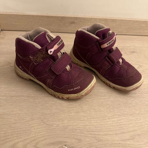 Viking overgangsko/joggesko i størrelse 24. Modellen har borrelåslukking og elastiske lisser for enkel av- og påkledning.
