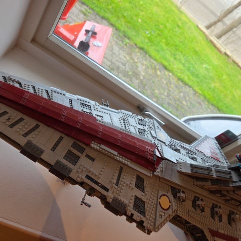 Neste hele Lego Star Destroyer. Et par deler har falt av men det er lett å få det tilbake igjen. Det kommer med den originale manuell og alle deler som har falt av. Mini figurene er ikke inkludert. Si ifra hvis du har spørsmål og sjekk ut konto mitt for mer lego greier! Original pris er 2000kr. Kan sendes men kanskje blir ødelagte.