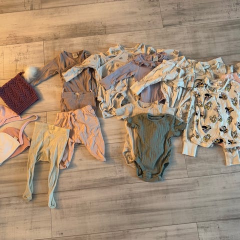 Har to klespakker i str 62 da jeg tenkte det var litt mye klær for en klespakke, men er det ønskelig å kjøpe begge så send meg en melding så sender jeg dem sammen! :)