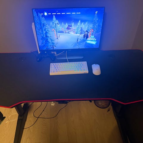 Gamingstol, pc skjerm og pult m/skuffeseksjon