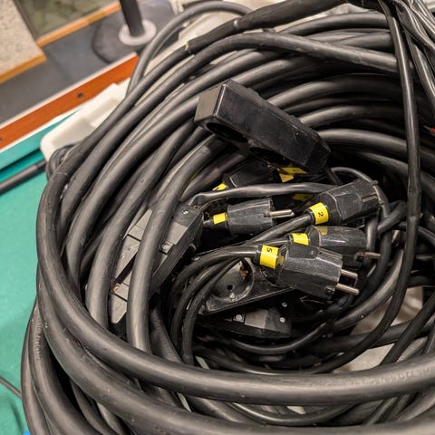 Multikabel som ikkje har vore i bruk dei siste åra. Kanal 2, 3, 4, 6, 11 og 13 fekk eg ikkje lyd i. Mulig dei er krysskobla men det sjekka eg ikkje