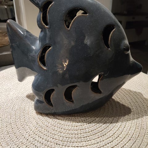 Keramikk fugl veggdekor i mørk glasur. Formen er en stilisert fugl med utstrakte vinger. Baksiden er uglassert og har hull for oppheng på vegg. Passer som dekorasjon i stue, gang eller andre rom der man ønsker veggpynt i keramikk.