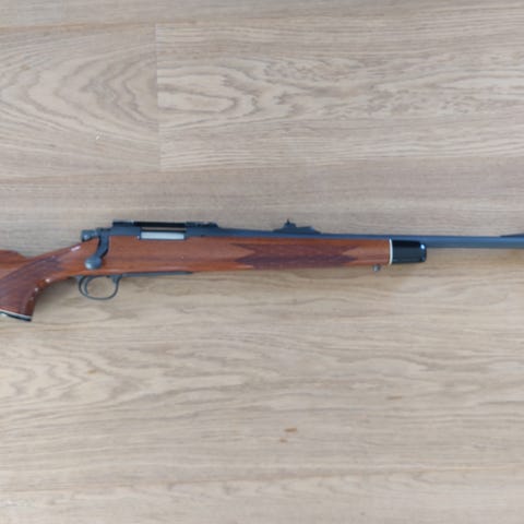 Remington model seven kuiu i .308 win selges da den ikke blir brukt. Pent brukt rifle, men noen misfarginger i camo (bilde). Løpet er 43cm, og «utvidet» i enden med gjenger fra fabrikk, husker ikke stigning, er noe amerikansk, jeg har montert Atec a-lock