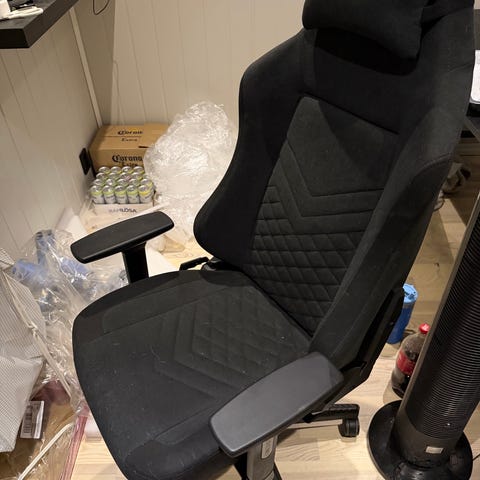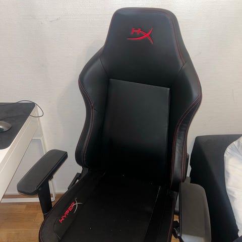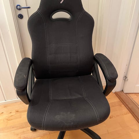 Veldig fin stol, som kan brukes til gaming eller kontorarbeid osv. Puten kan justeres på, se bilder. Høyde kan også justeres ved en spak under. Ta kontakt ved interesse. Må hentes.