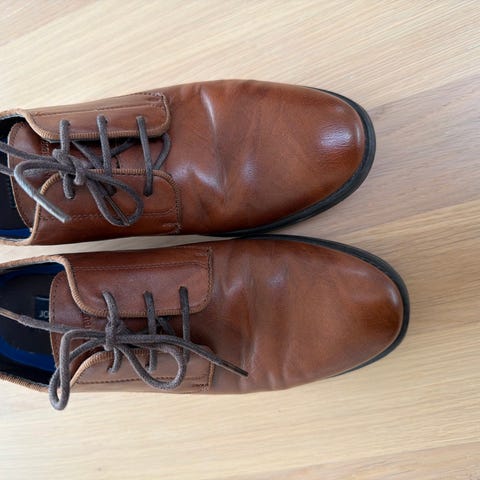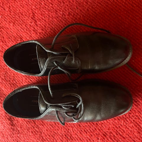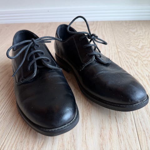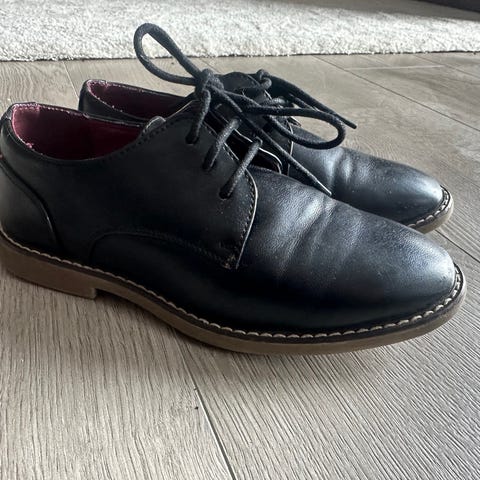 ...som jeg selv kjøpte her på Finn for en hundrings, men som dessverre var aaaaaltfor smake for min gutt som er på den brede sida sånn fotmessig. De kom med et par ubetydelige, overflatiske bruksmerker nær skotuppen, men ikke noe litt skosmurning ikke kan gjøre noe med. Ut over det er de i svært god stand og framstår nær ubrukte. Innleggssåler følger med. Selger dem for det samme jeg ga for dem: 100 kr.