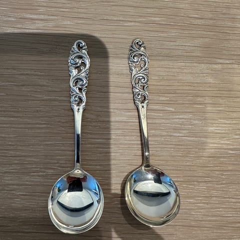2 anretningsskjeer 21,8cm, 5000,- for begge, evt kr 2600,- pr stk