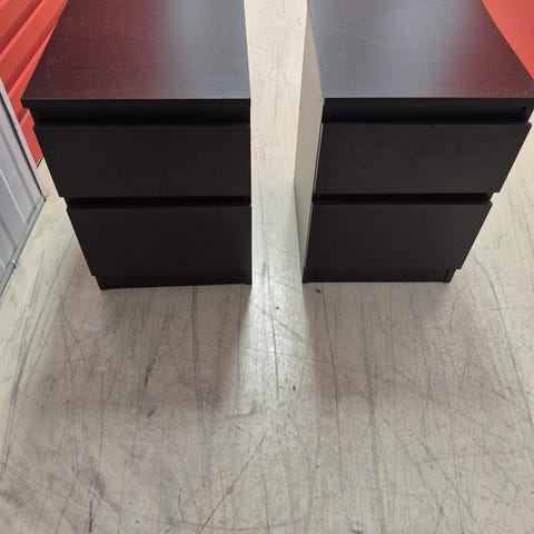 Selger et pent brukt nattbord i mørk (svart/brunsort) finish.