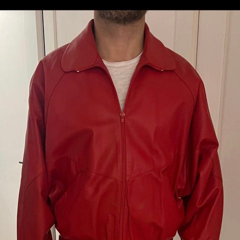 Vrengbar jakke, 2 jakker i et, kragen kan også taes av for å bli mer bomber jacket. Ekte skinn.
