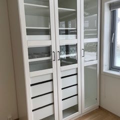 Mål: dybde 55 cm, bredde 44 cm, høyde 173 cm totalt med en modul 100 cm og den andre 73 cm.