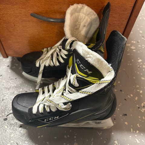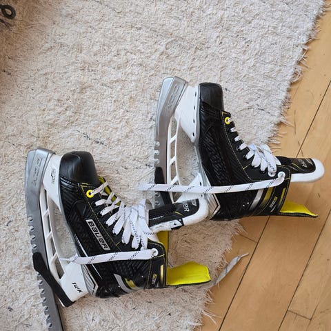 Ble bomkjøp, bommet med en hel størrelse. Skøytene ble såpass store at guttungen må ha en mellomstørrelse før han passer disse skøytene som er til salgs. Han har brukt dem ved to treninger, men de blir alt for store til aktivt bruk. Jeg har et par ekstra stål til skøytene, disse følger med på kjøpet👌