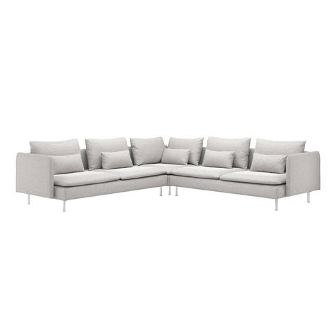 IKEA SÖDERHAMN hjørnesofa i lys beige stoff.