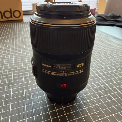 Nikon AF-S VR Micro-Nikkor objektiv 105mm f/2.8G IF-ED i selges. Pent og lite brukt, stort sett stått i samlingen.