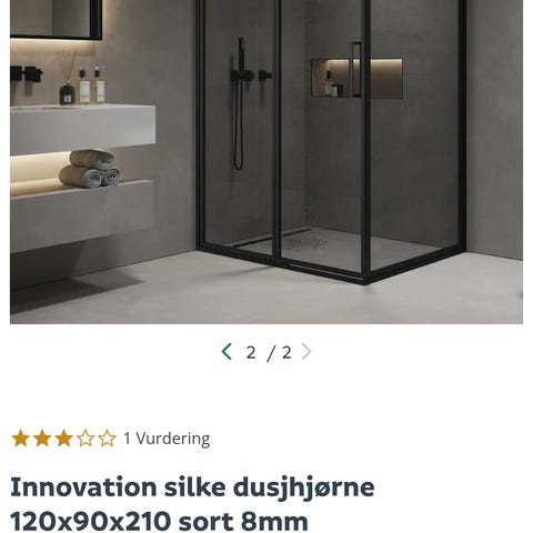 RESERVERT. Celeste rett dusjhjørne 90×90×190 cm m/sikkerhetsfolie, sort. Ble kjøpt nytt i oktober 2024, men passet ikke til vårt bad. Har stått lagret innendørs.