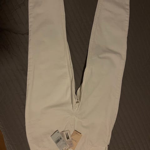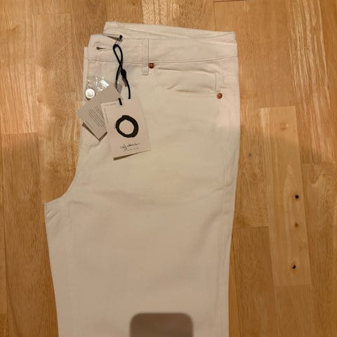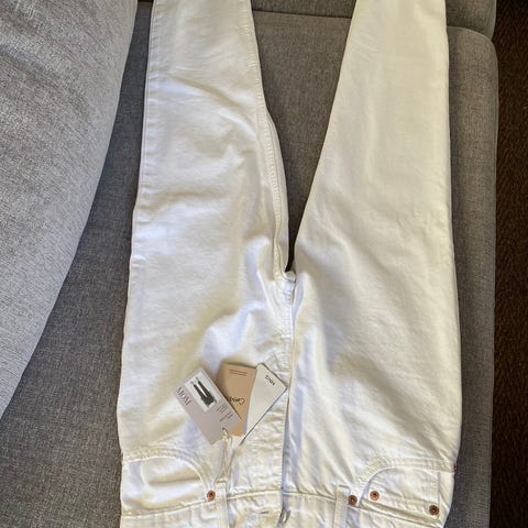 Rag & bone jeans for dame i størrelse S med livvidde W27. Buksen er hvit/ecru og laget av økologisk bomull uten stretch. Klassisk 5-lommers modell med knappegylf.