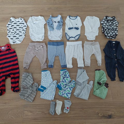En fin klespakke til baby mred h&m klær i str 62 selges.