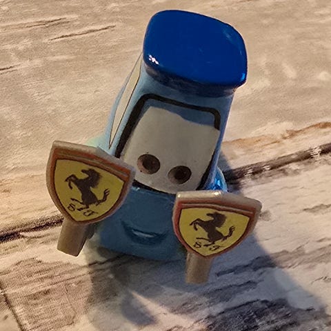 Basert på merkingene i bildet og samsvarende søkeresultater, er dette en modell av karakteren Mack, den trofaste transportøren til Lynet McQueen.