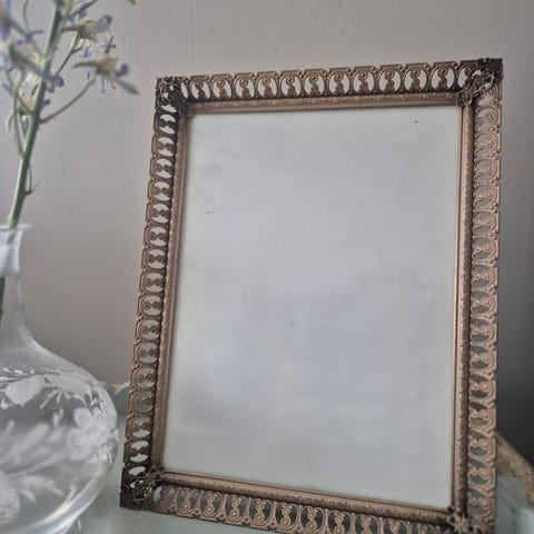 Utskåret bilderamme 13x18 cm i tre, malt hvit med patina.
