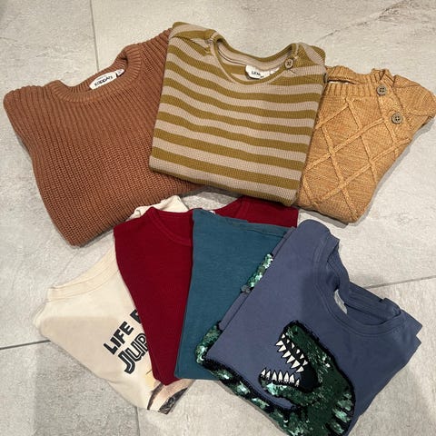 Ulltrøyer i størrelse 98-104 av forskjellige merker selges samlet.