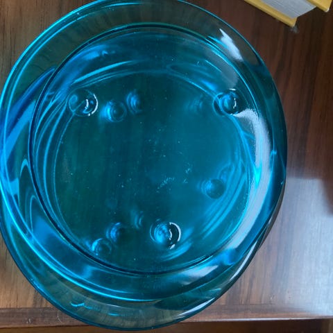 Glassfat med liten fordypning. Muligens Tjekkisk