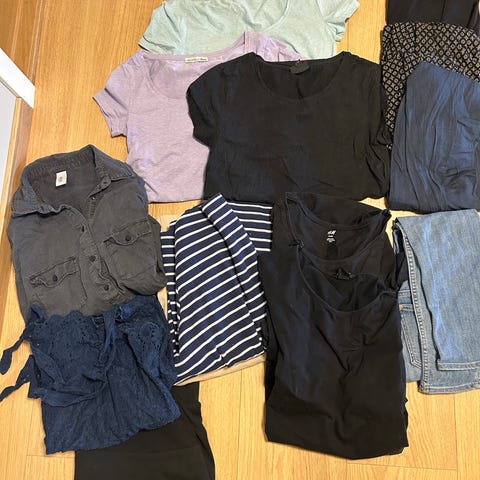 Bukse og shorts er uåpnet, mens resten er pent brukt uten synlige merker.
