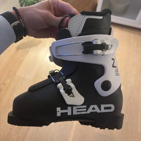 Head R N alpinstøvler for barn i svart og hvit farge. Støvlene har to justerbare spenner .