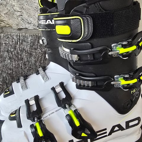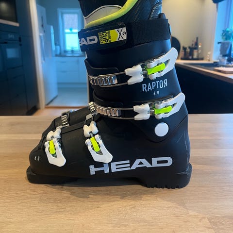 Støvlene er kun brukt 2 ganger i slutten av fjorårets sesong og fremstår som nye. Head Raptor alpinstøvler i størrelse 26.5. Støvlene er hvite med svarte spenner og detaljer. Modellen har fire spenner og kraftig stropp øverst for god tilpasning rundt leggen. Passer til alpint bruk i preparerte bakker. Egner seg for brukere som ønsker en presis og stabil alpinstøvel.