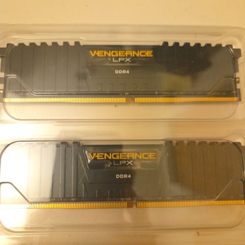 Selger mine 2 RAM-moduler, hver med 16 GB og 2666 MHz, det er DDR4-moduler og C16.