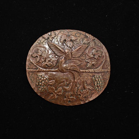 1. Dress klip med filigran baksiden og med gravert klip. Den er veldig patinert etter tid.