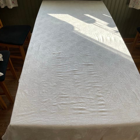 De er helt hvite, men det er brodert inn motiver i stoffet av løv, blader, natur.