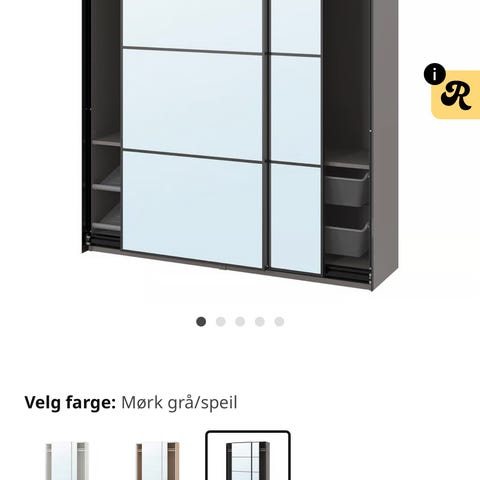 Pax garderobeskap som er i 2 deler, det er samme som er på bildet bare med litt annderledes innredning. Hvordan skapet er satt opp nå vises på bilde nr 2, det følger også med en ekstra hylleplate til den store delen i skapet.