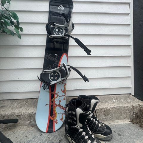 Burton Tribute snowboard og et annet snowboard.