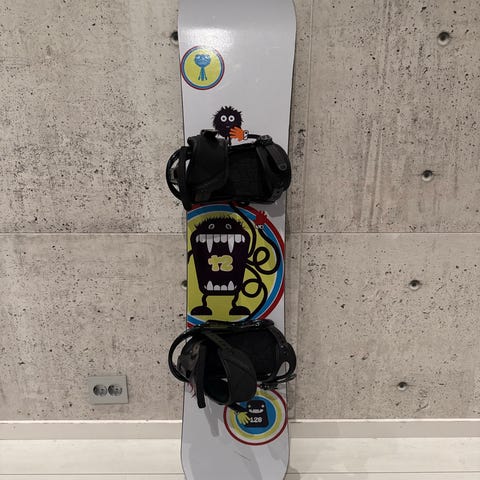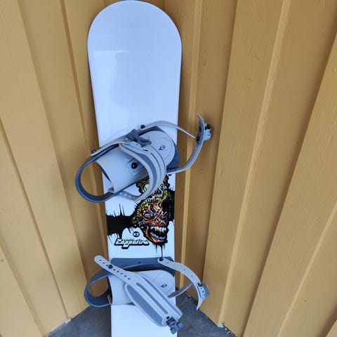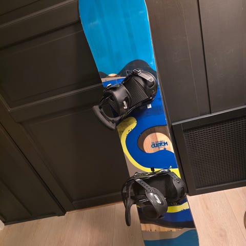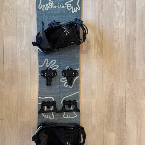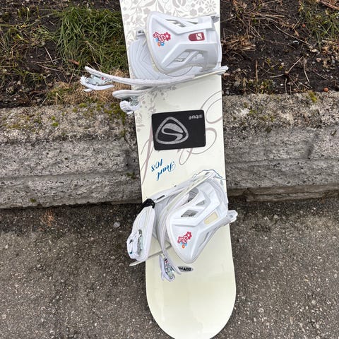 Burton snowboard med Burton-bindinger. Brettet har hvit og flerfarget design med grafiske mønstre. Snowboardet leveres med matchende hvite Burton-bindinger montert på brettet. Burton women supreme sko i størrelse 38(men passet meg helt fint som har størrelse 37). Gode og behagelige sko med god støtte/polstring. Myke på innsiden.