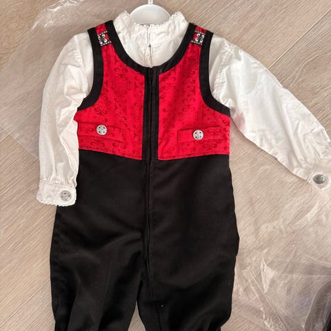 Pent brukt festdrakt fra Reflex str 80. Glidelås i front. Medfølger skjortebody.