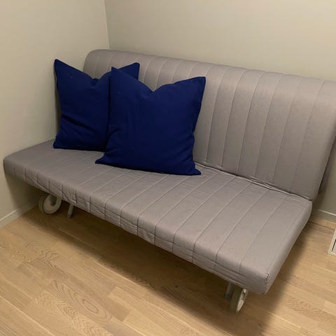 Velholdt og lite brukt sovesofa gis bort. Brukt kun et fåtall ganger ved gjestenes. Lett og slå ut til seng og sammen til sofa. Trekket er ikke slitt. Må hentes. Gis bort til første som kommer og henter etter avtale.